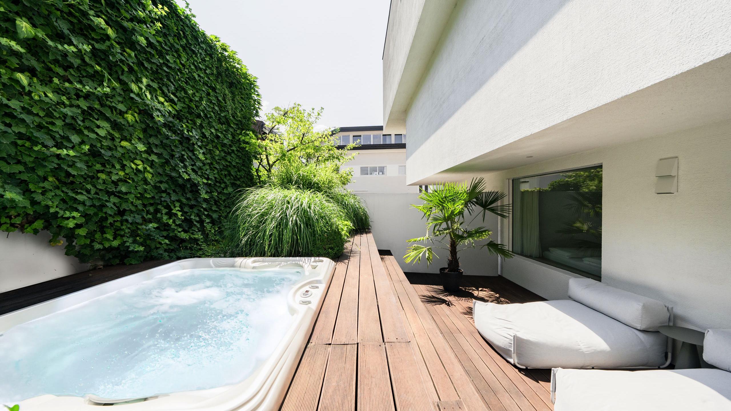 Highlight: giardino privato con idromassaggio riscaldato tutto l’anno