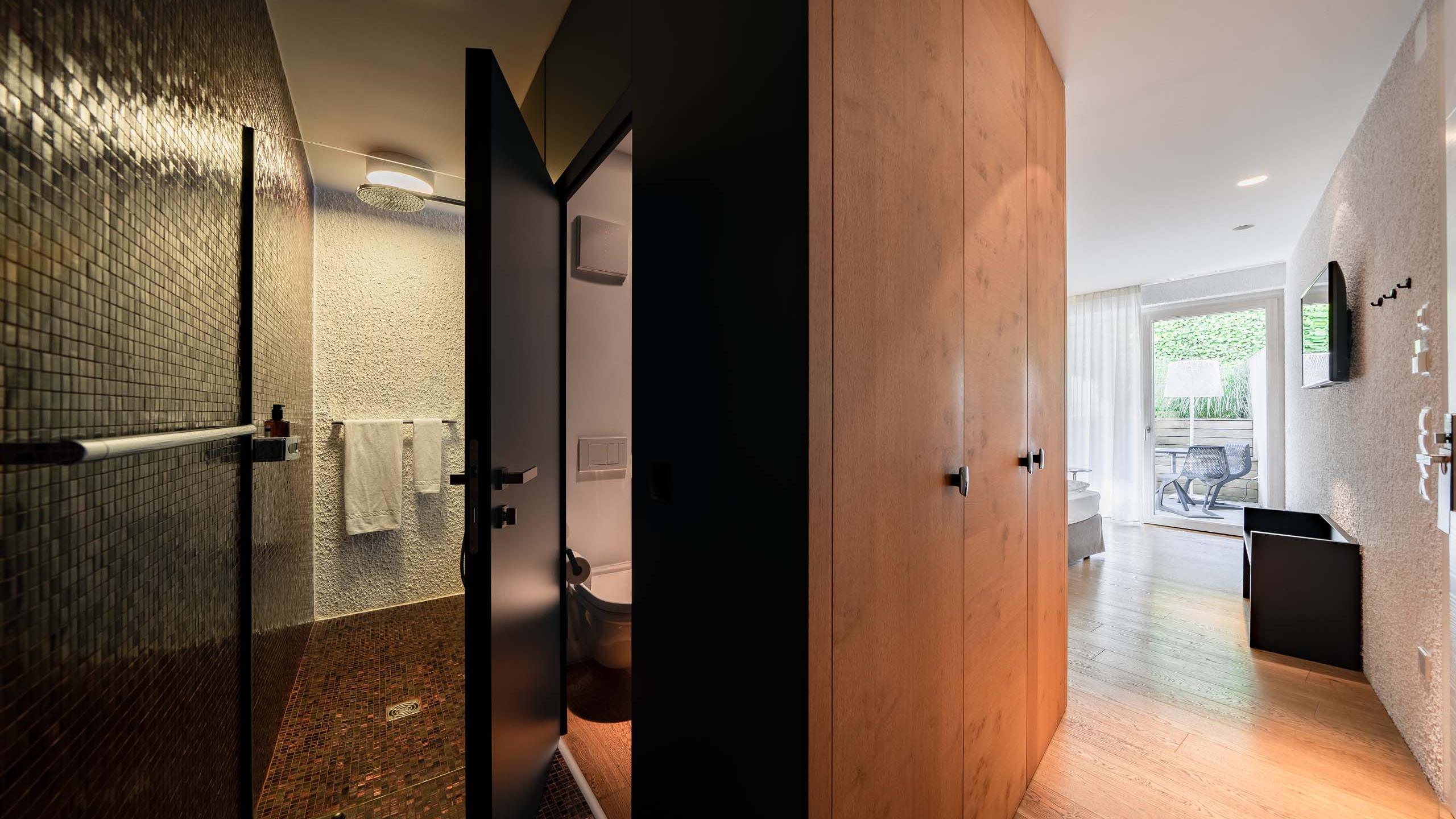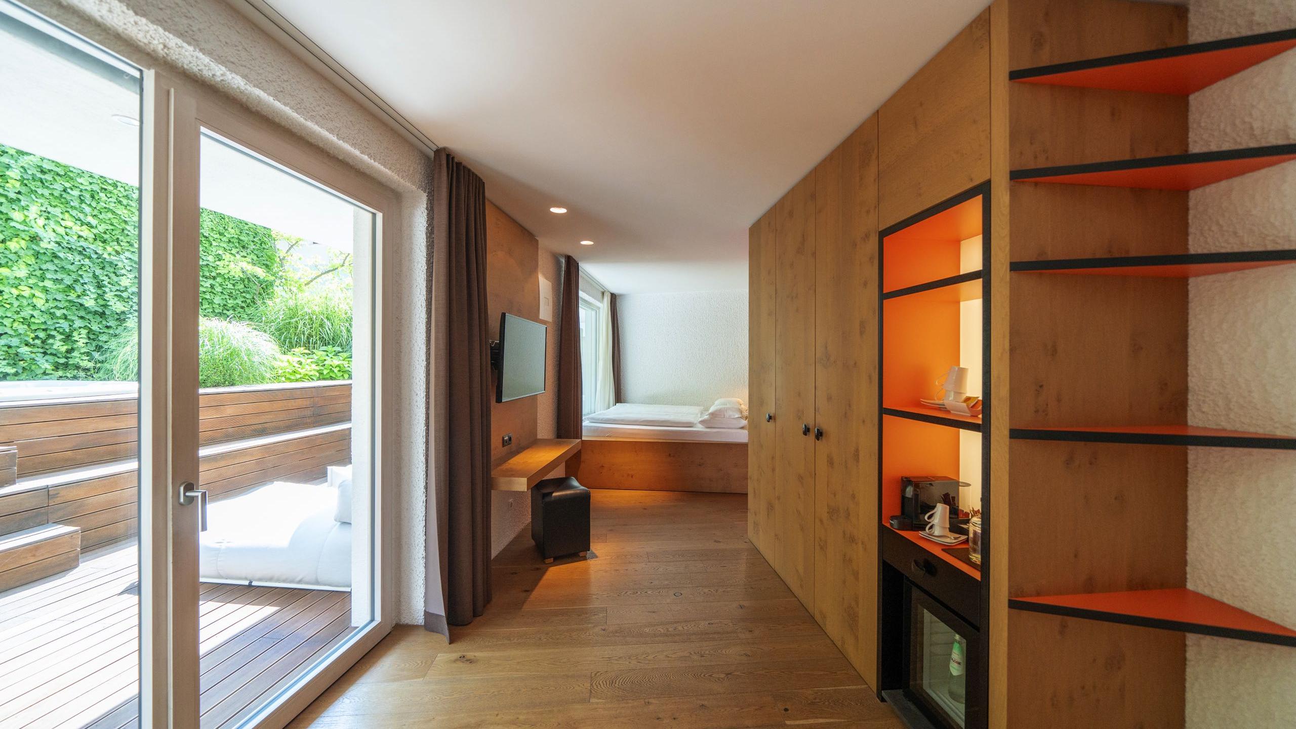 La junior suite Garten vanta, proprio come lascia intendere il nome, un ampio giardino privato dai 40 ai 70 m² con idromassaggio riscaldato tutto l’anno per godersi privacy e momenti di coppia. È inoltre dotata di un letto matrimoniale, un bagno, un’area salotto, una macchina da caffè, una TV, un bollitore SMEG, un minibar, un asciugacapelli, prodotti per la cura della pelle e dei capelli, un set per la cura delle scarpe, un ombrello (anche se il sole splende sempre) e un angolo lettura con mobili di design.