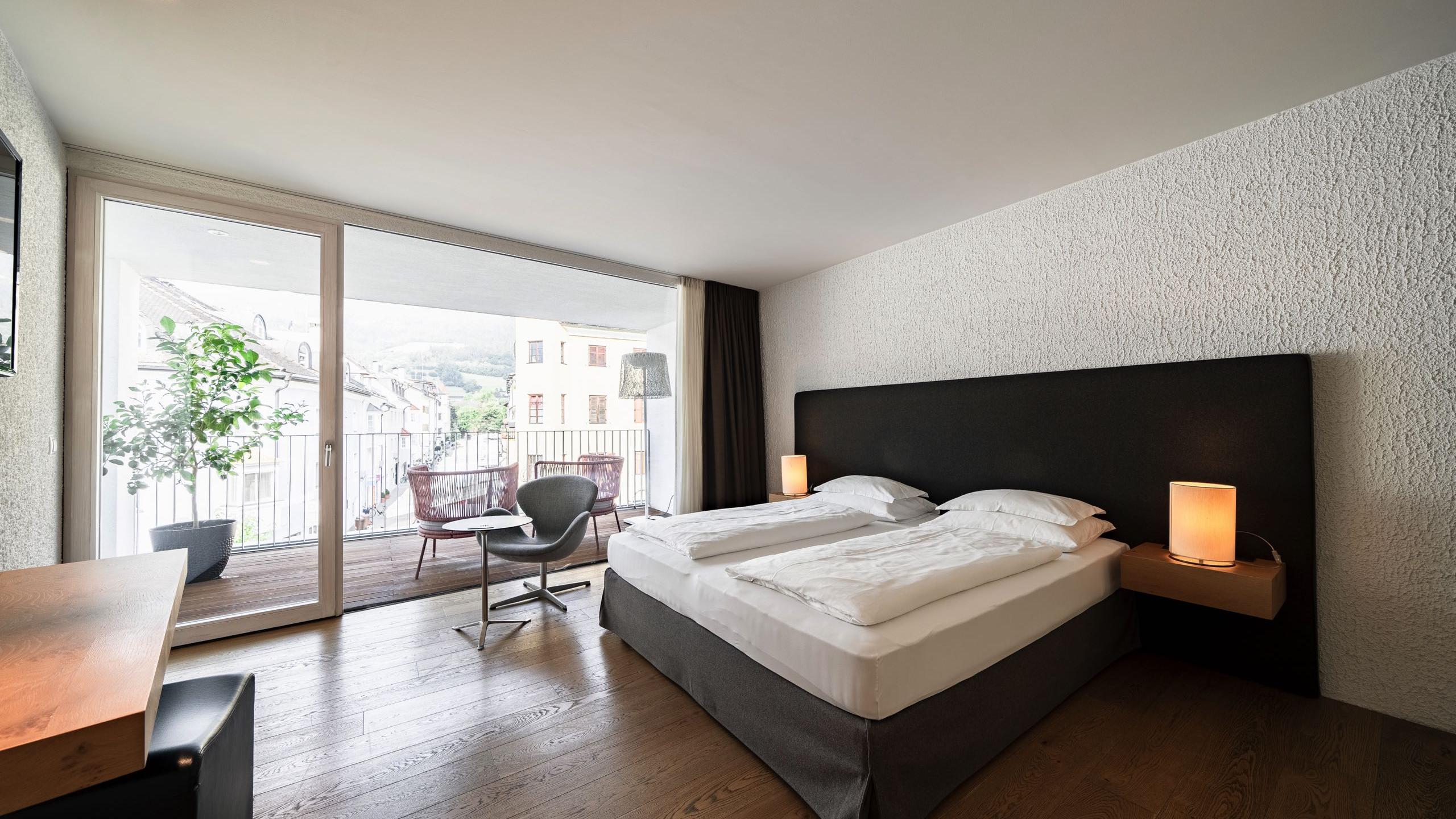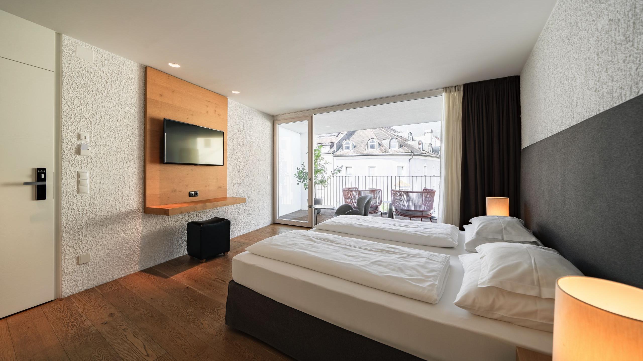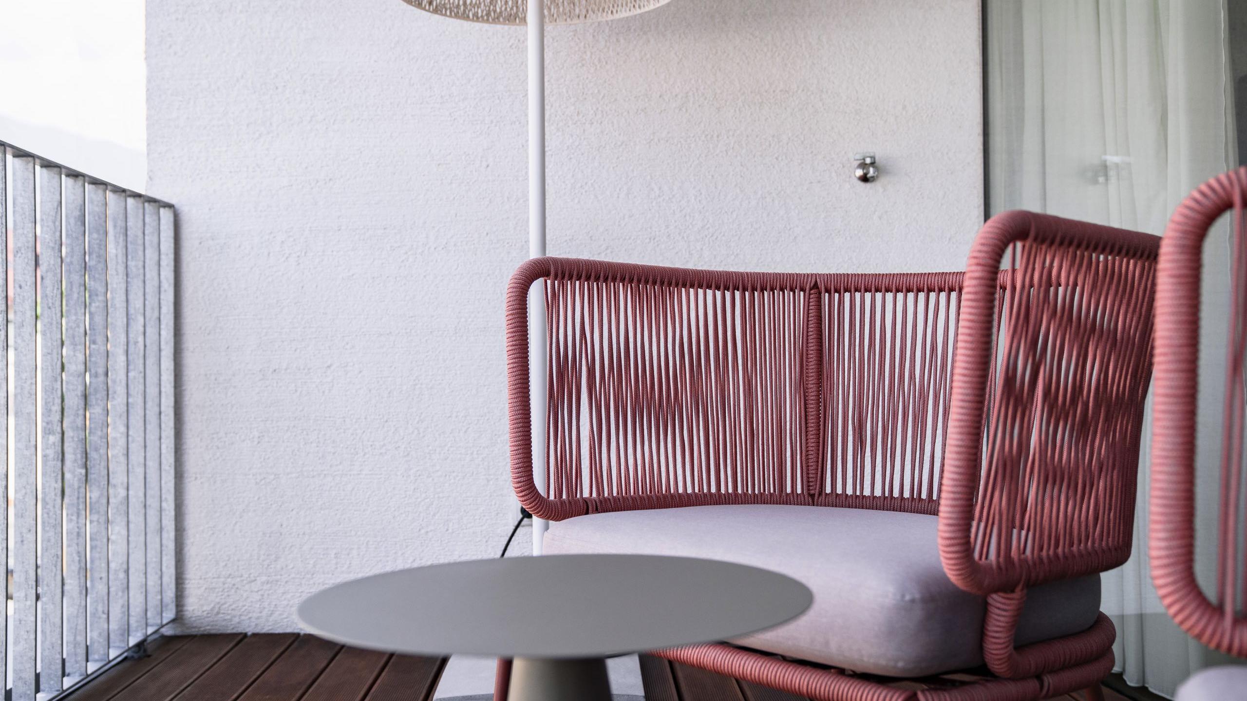 Die Loggia-Juniorsuite überzeugt mit einer privaten, 10 m² großen Loggia mit Weitblick über die Dächer der Bischofsstadt. Zudem ist sie mit einem Doppelbett, einem Badezimmer, einer Sitzecke, einer Kaffeemaschine, einem Fernseher, einem SMEG-Wasserkocher, einer Minibar, einem Föhn, Pflegeprodukten für Haut und Haar, einem Pflegeset für die Schuhe, einem Regenschirm (auch, wenn immer die Sonne scheint) und einer Leseecke mit Designermöbeln ausgestattet.