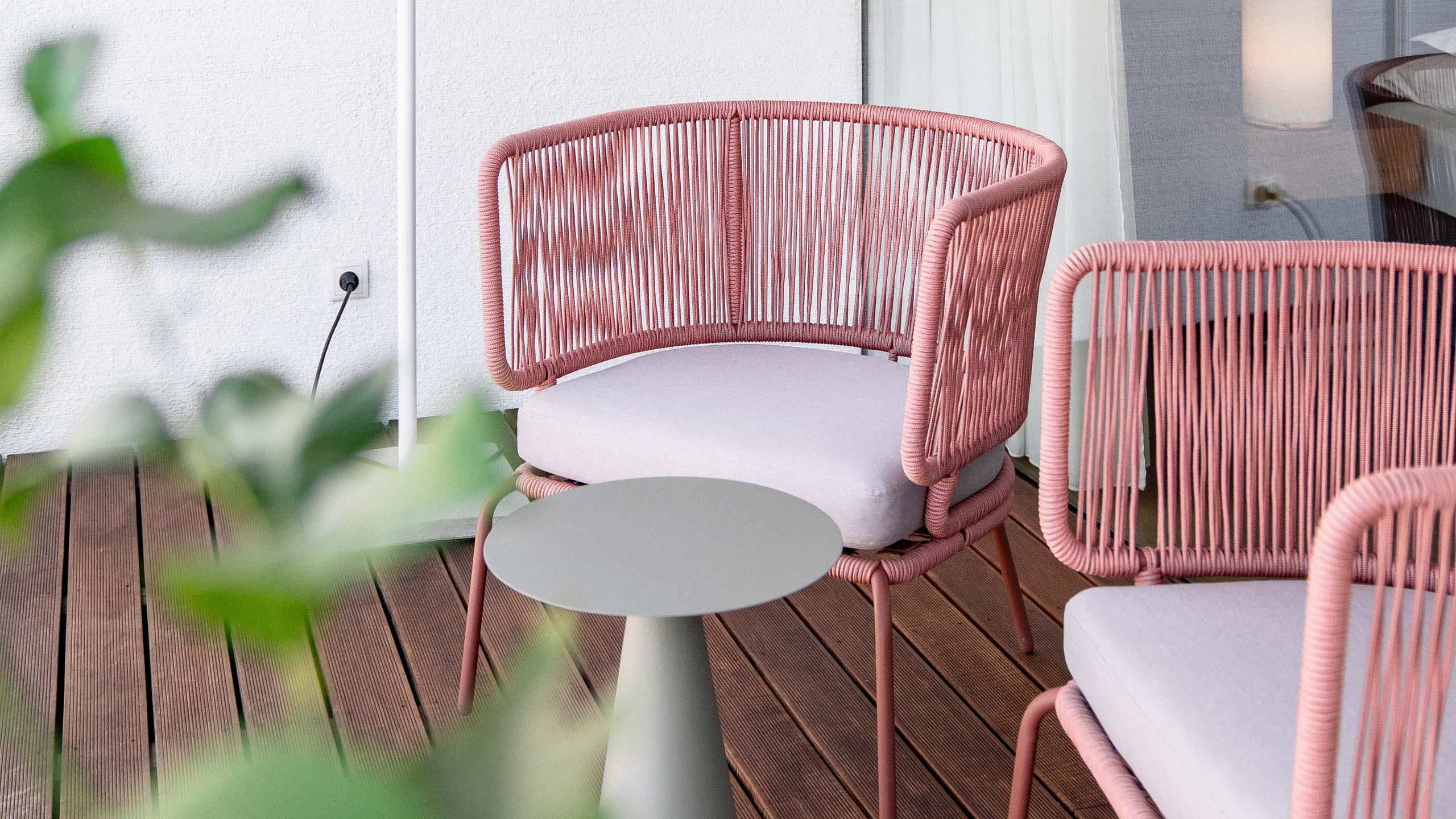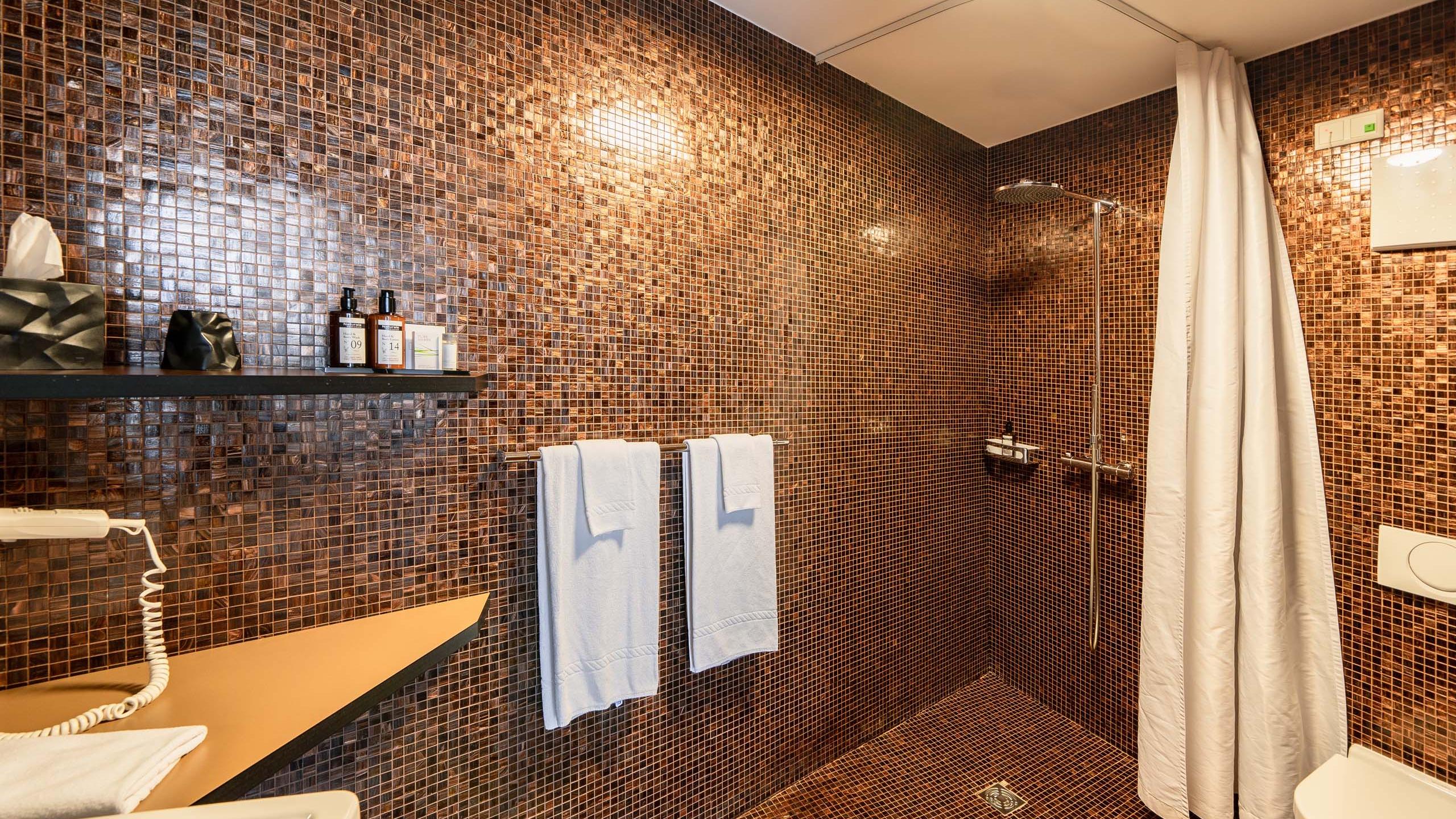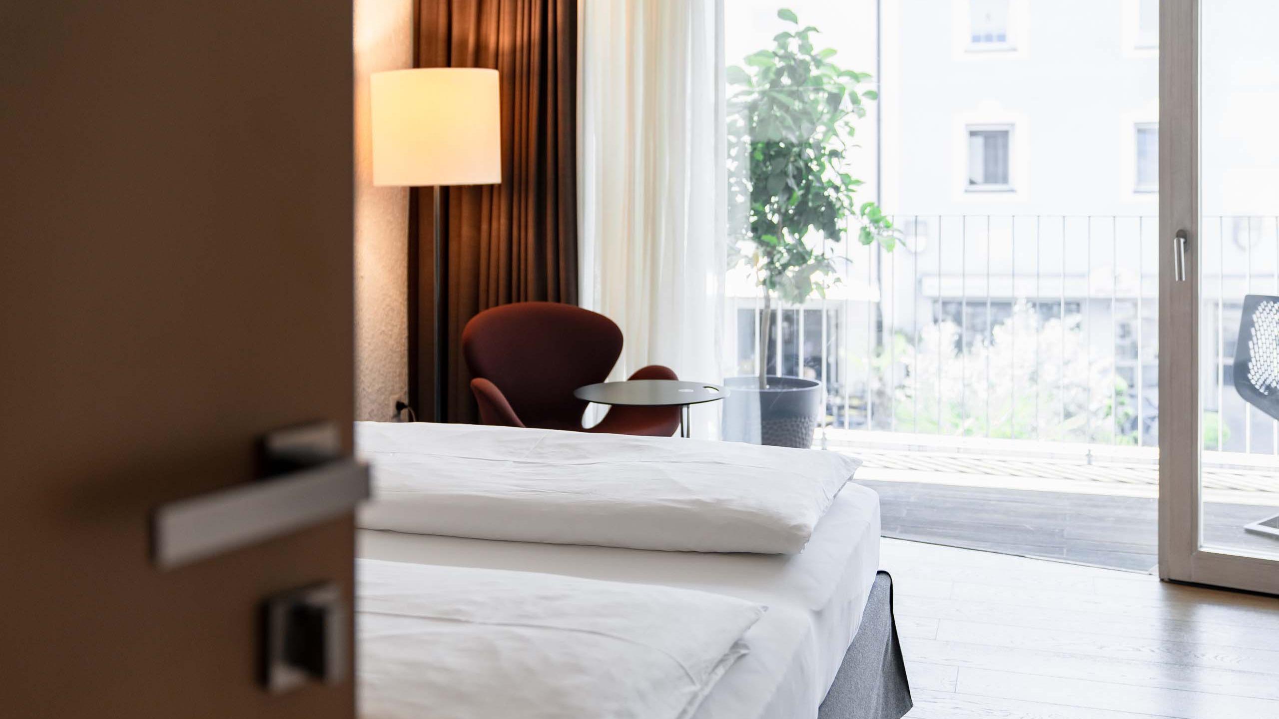 Die Loggia-Juniorsuite überzeugt mit einer privaten, 10 m² großen Loggia mit Weitblick über die Dächer der Bischofsstadt. Zudem ist sie mit einem Doppelbett, einem Badezimmer, einer Sitzecke, einer Kaffeemaschine, einem Fernseher, einem SMEG-Wasserkocher, einer Minibar, einem Föhn, Pflegeprodukten für Haut und Haar, einem Pflegeset für die Schuhe, einem Regenschirm (auch, wenn immer die Sonne scheint) und einer Leseecke mit Designermöbeln ausgestattet.